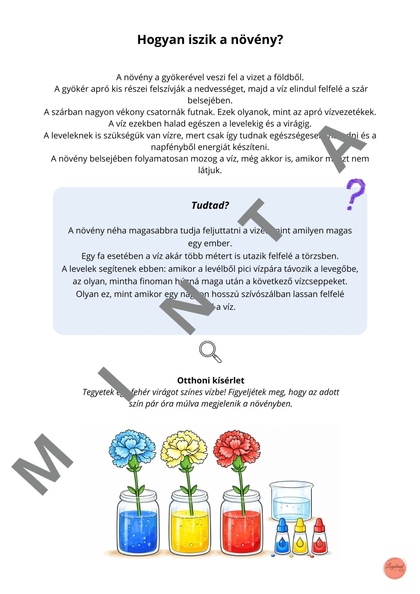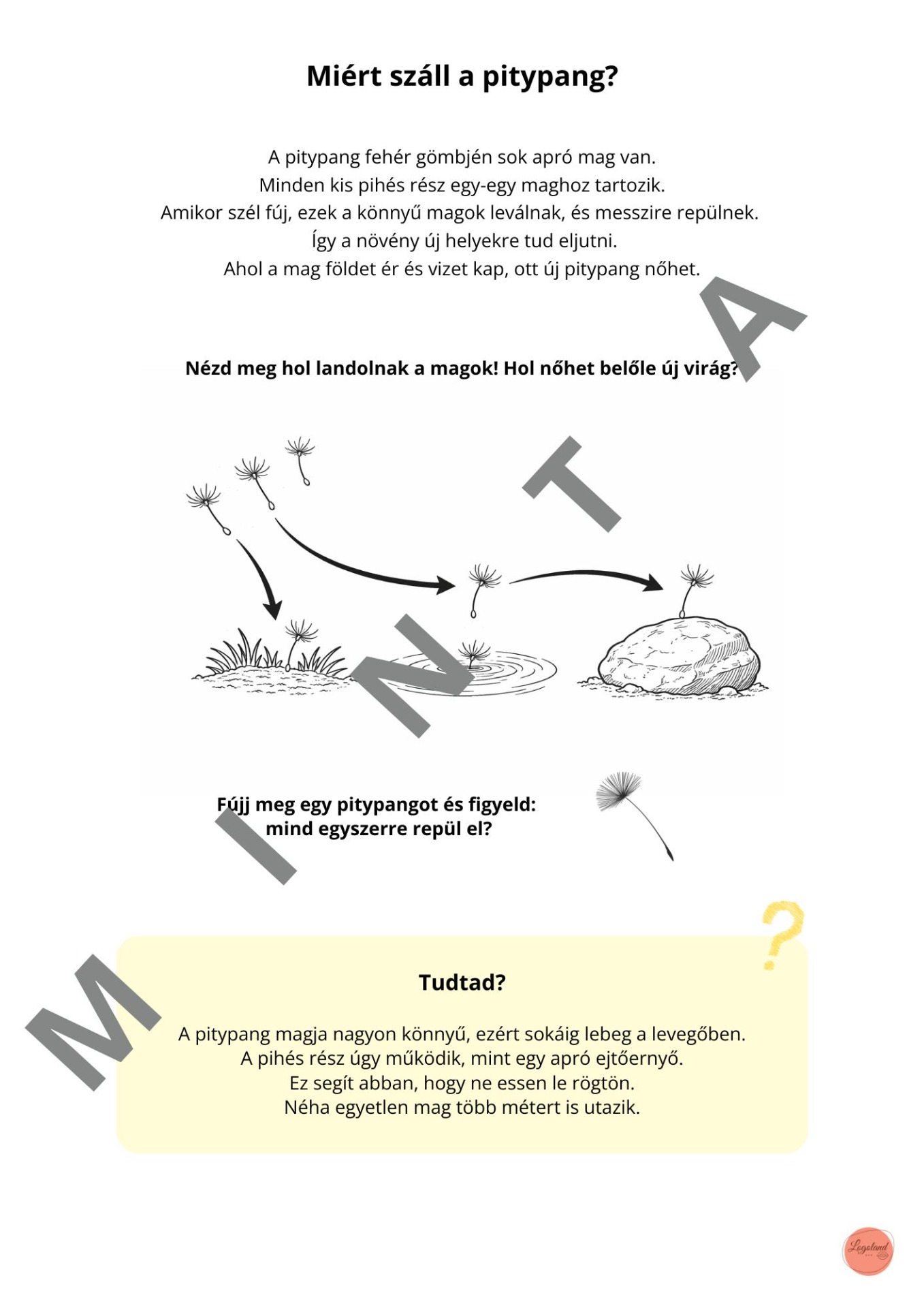 hogyan nyílik ki a virág, hogyan jut el a víz a növényhez, mit csinál a méh, hogyan fejlődik a béka, miért bújik elő a giliszta eső után, vagy hogyan repül a pitypang magja.